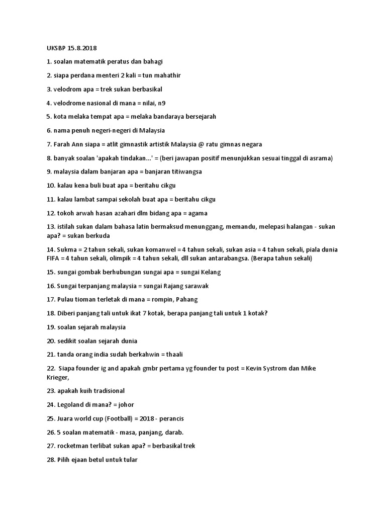 Contoh Soalan Uksbp 2017 Serta Jawapan
